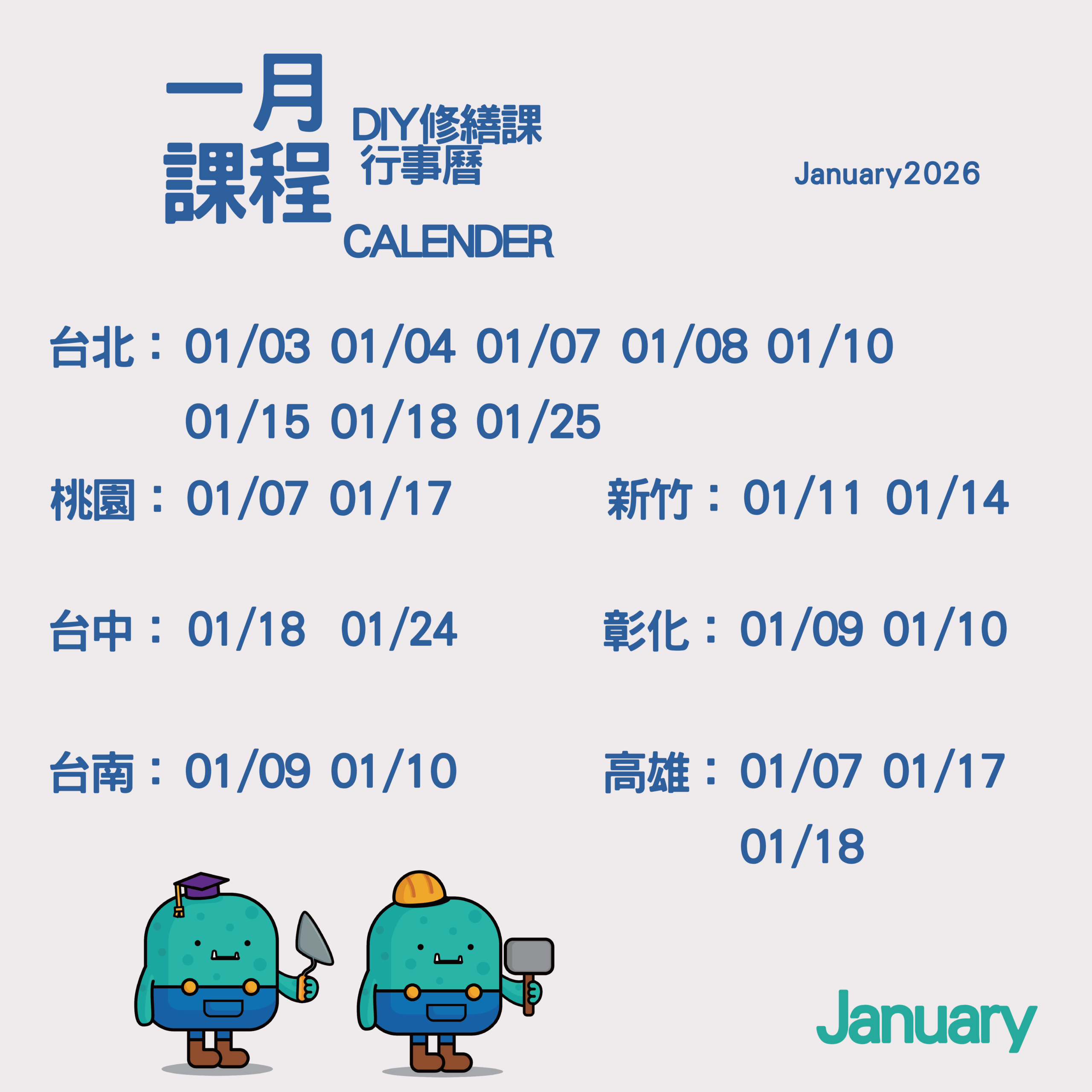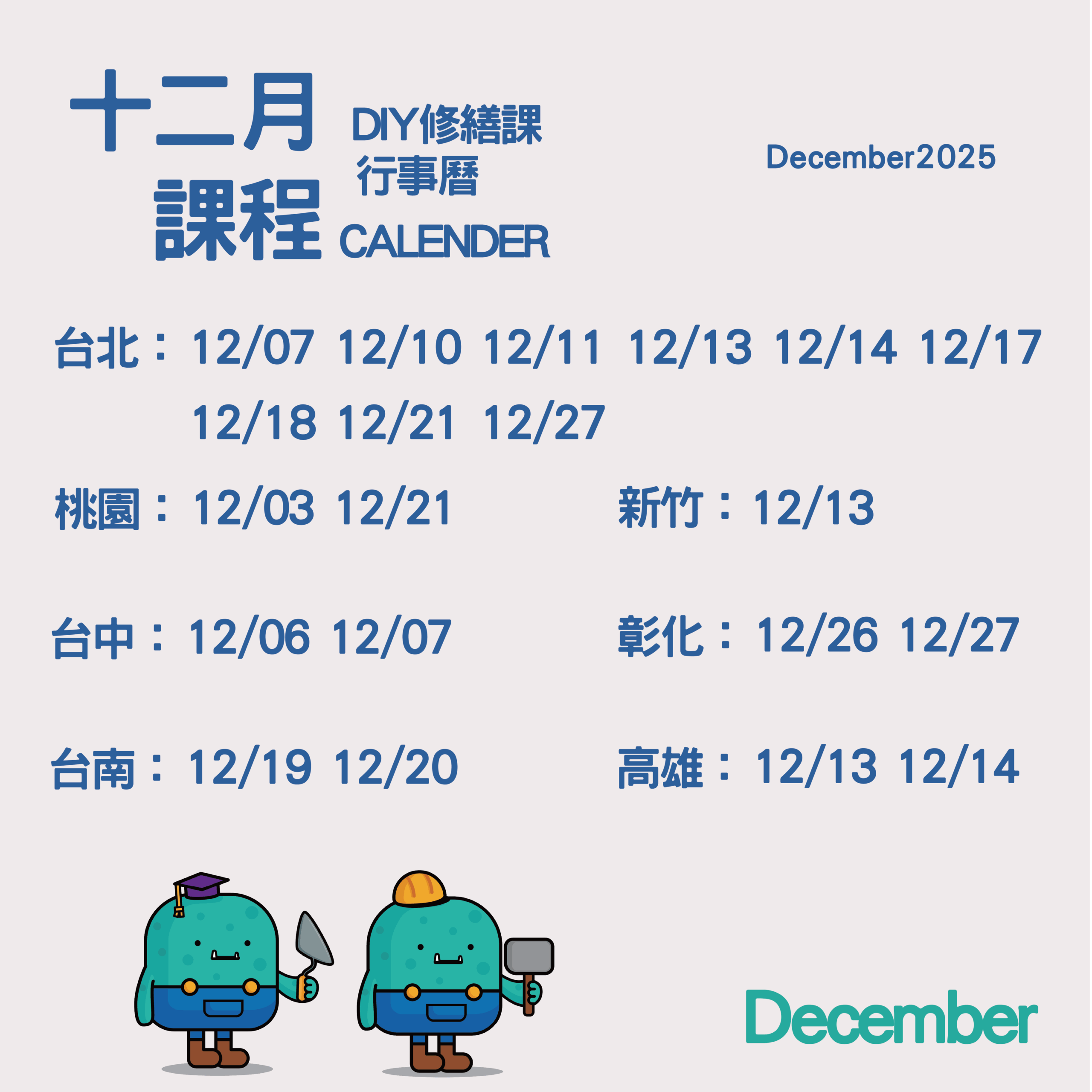 精選常見居家修繕項目,高比例實作,零基礎入門教學,只要你有興趣,無論是不是新手,男女老少都可參加。