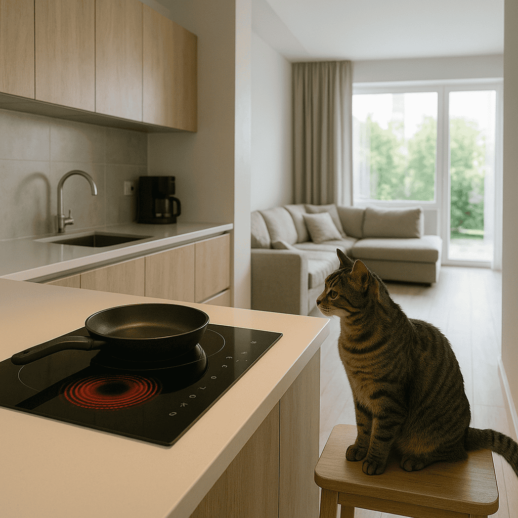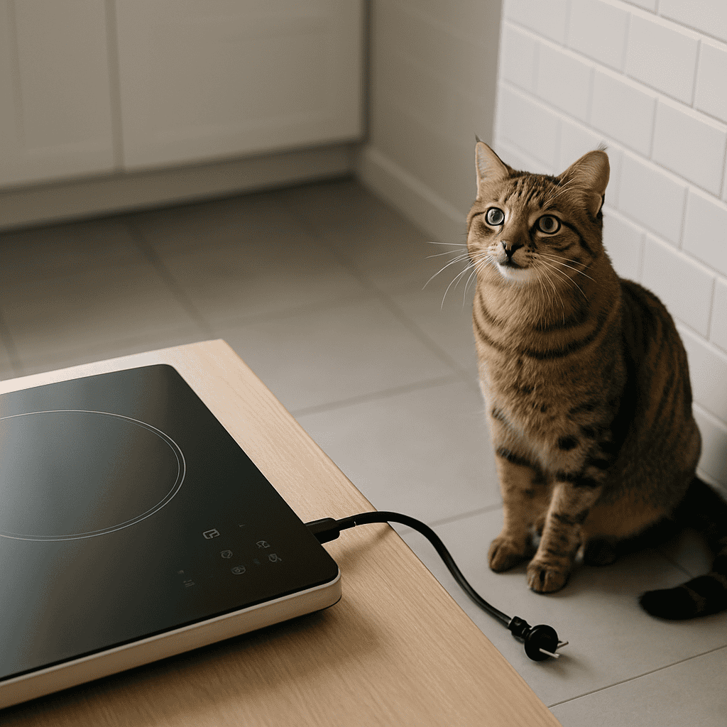 因為許多人都會讓毛孩在家中自由走動,貓咪誤開電磁爐而引發火警的案例屢見不鮮。雖然現在大多數電磁爐都有安全鎖(例如需長按三秒才會啟動),但其實安全性仍不算高;如果爐面長期擺放鍋具,一旦被誤觸開啟,更容易造成鍋具乾燒,風險大幅提升!