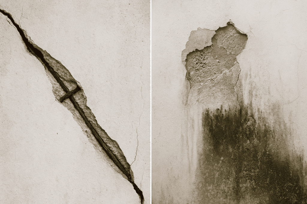 樓宇結構問題:像是建築物地基下沉、鄰近工程造成震動,或鋼筋因鏽蝕而膨脹,都可能導致牆體出現較深、較寬的裂縫。這類裂縫可能影響建築安全,應盡快請專業人員檢查。