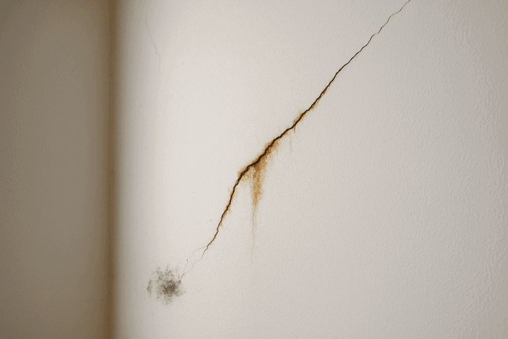 與滲水有關:裂縫周圍出現水漬、變色、發霉或油漆起泡剝落,代表必須先處理滲水源頭,否則修補後問題會不斷重現。