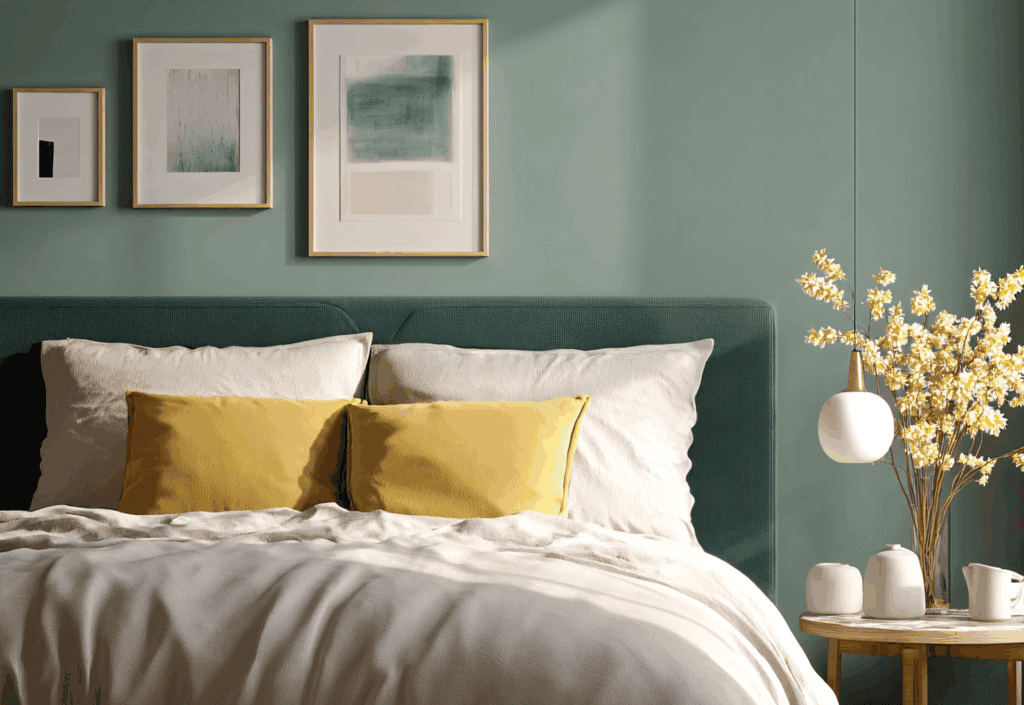 在穩重基調中,可少量融入帶灰調的莫蘭迪色系,如灰藍、鼠尾草綠、赤陶色或暗橙色。這些柔和卻有溫度的色彩,能運用在抱枕、掛畫、地毯或單椅上,替空間注入一絲生活氣息,同時維持整體的寧靜與平衡。