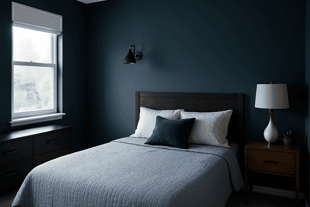 👉 建議可以用深藍色當局部搭配,像是沙發、窗簾、或小牆面,再搭配一點淺色或木質元素,整體會更舒服!!