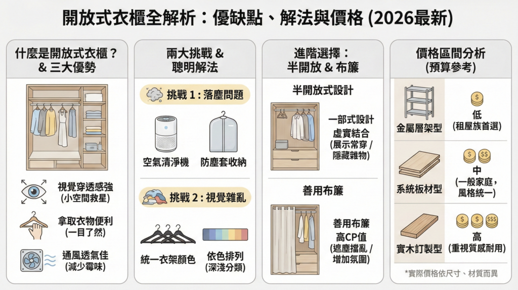 開放式衣櫃好用嗎?從優缺點、價格到半開放式設計全解析(2026 最新版)