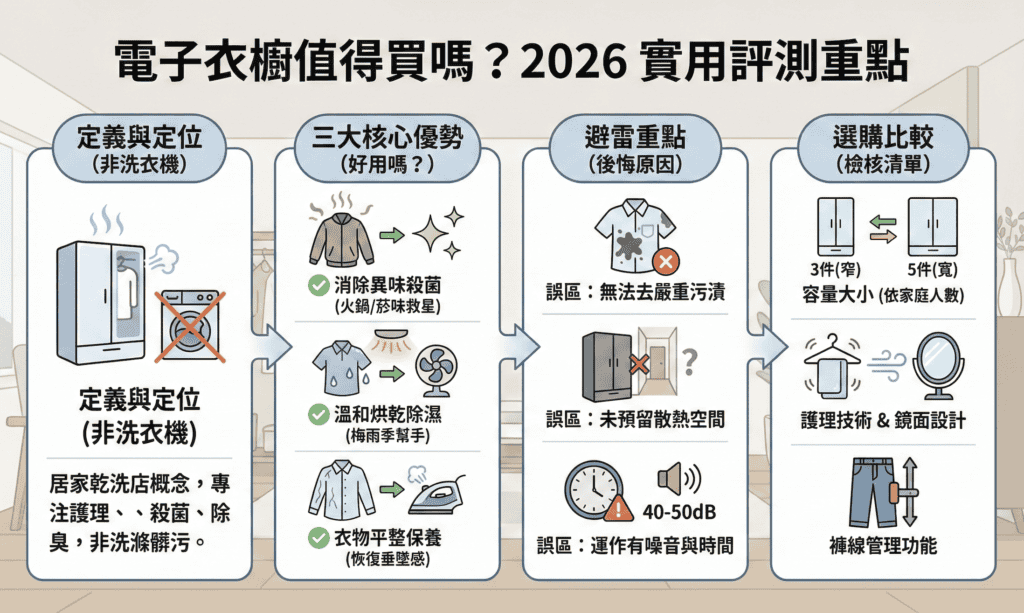 在台灣濕熱多雨的氣候下,衣物發霉、晾不乾或是剛吃完火鍋燒烤後外套殘留的異味,是許多家庭常見的困擾。隨著智慧家電的普及,「電子衣櫥」這項產品逐漸走入大眾視野,成為不少重視生活品質屋主的新寵。