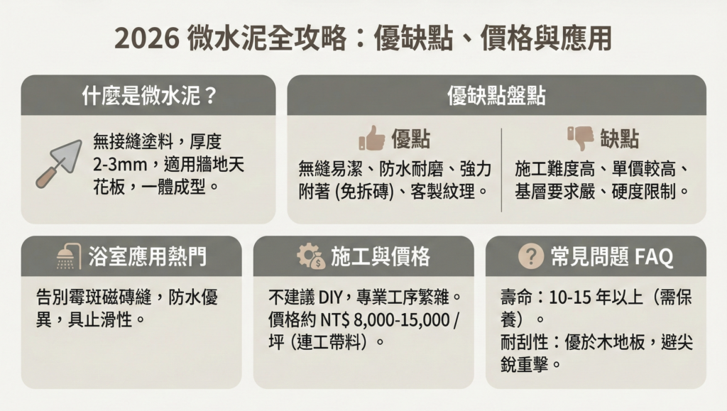 2026 裝修新寵「微水泥」全攻略:優缺點、價格、浴室施工與保養細節一次看