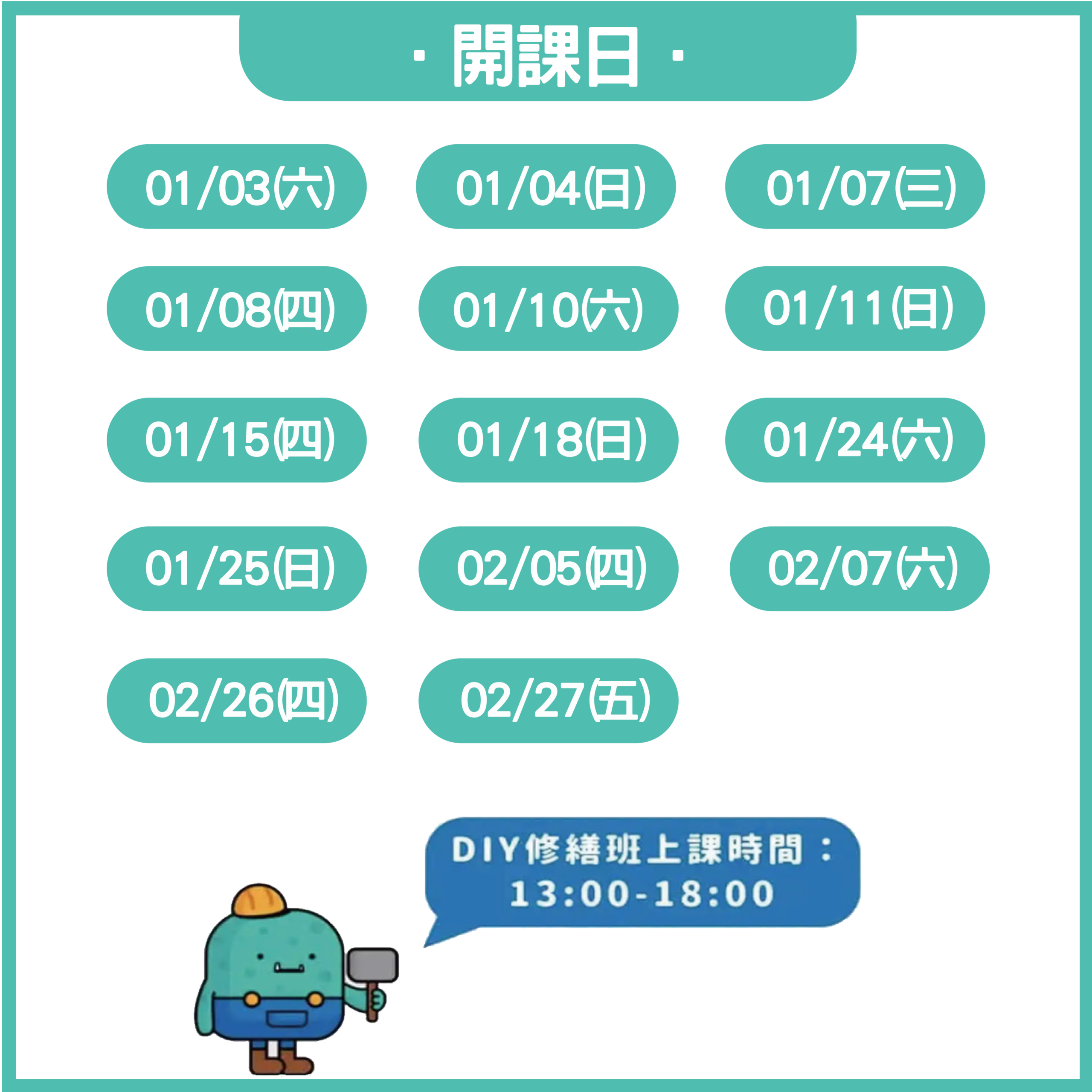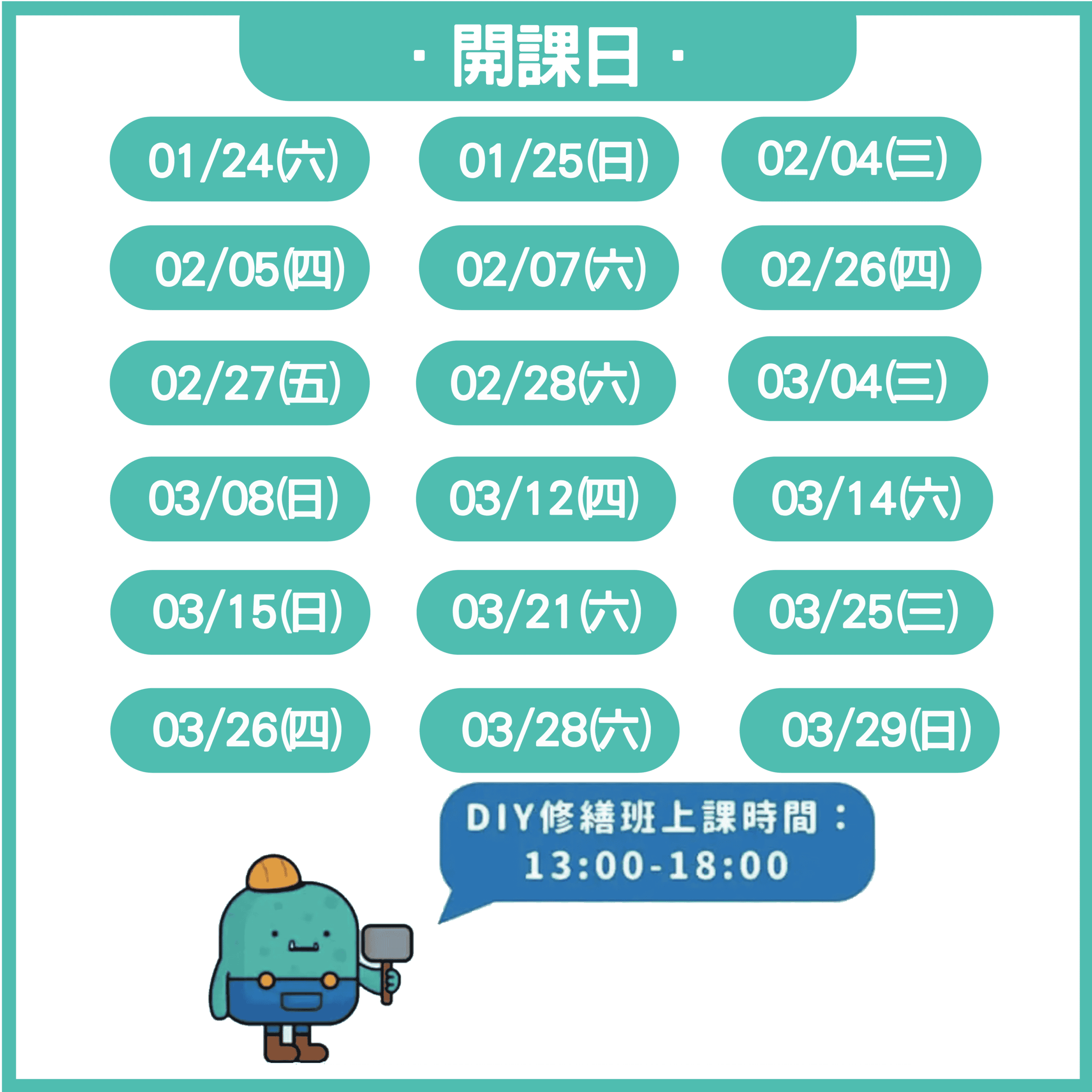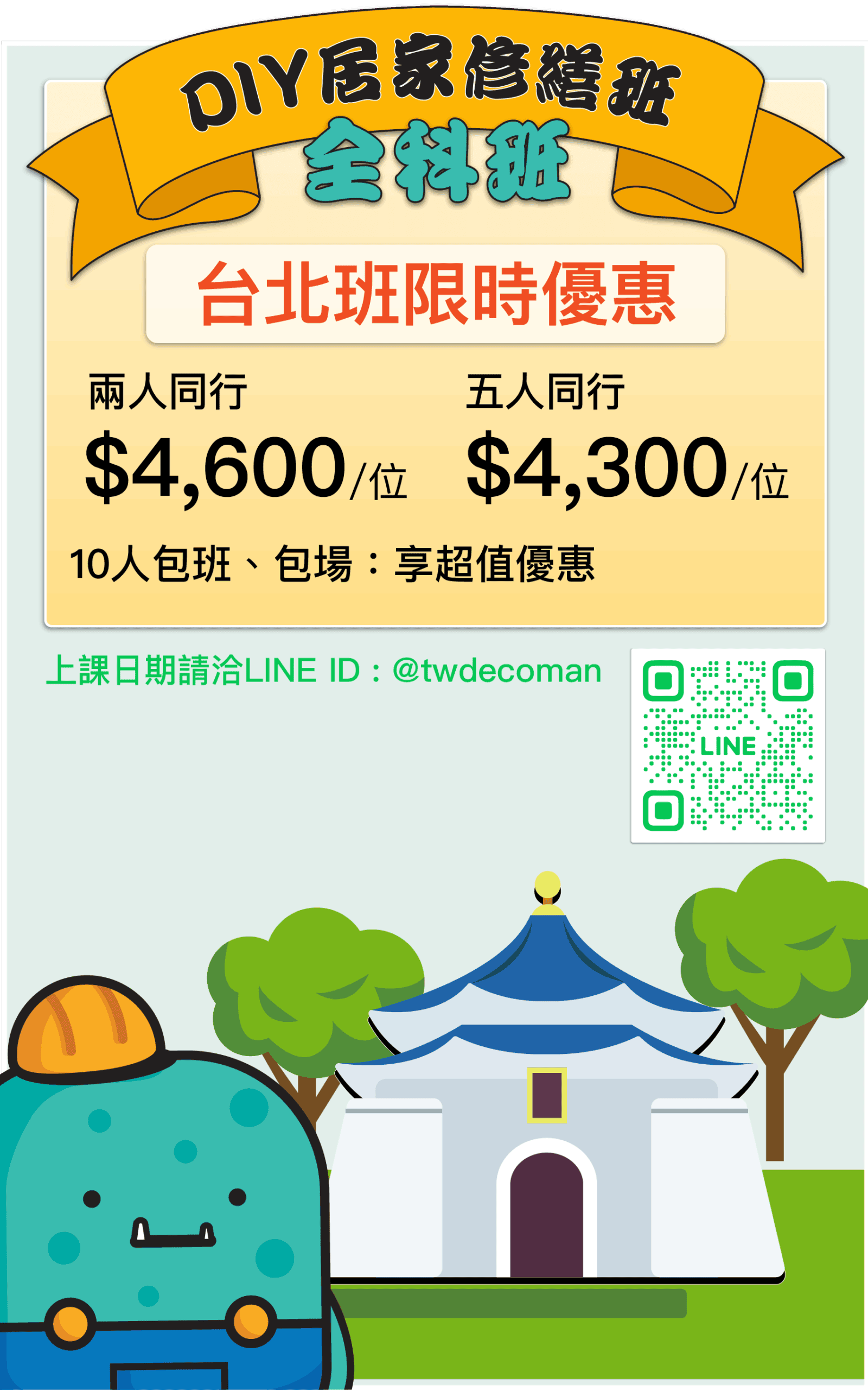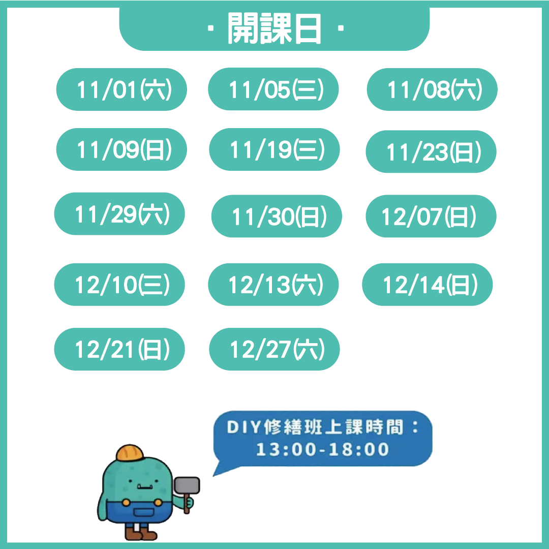 1. 【開課條件】DIY修繕班幾個人確定開班上課呢?