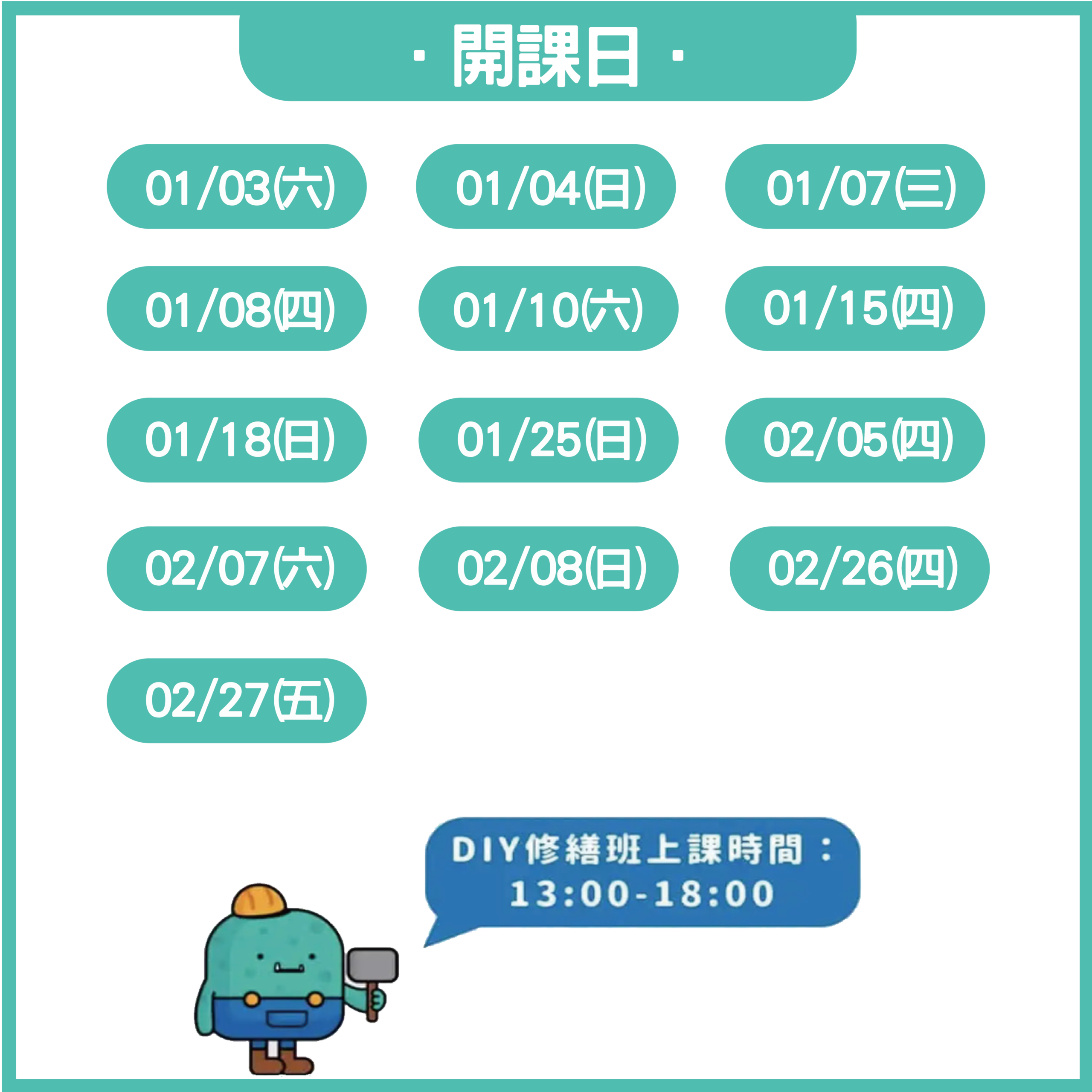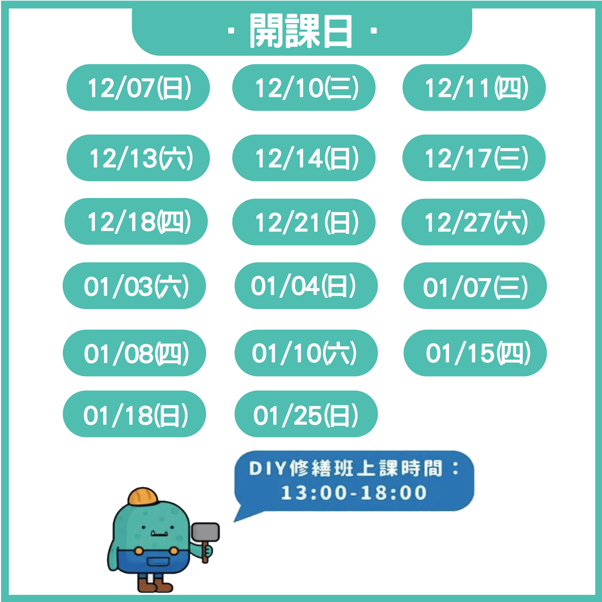 1. 【開課條件】DIY修繕班幾個人確定開班上課呢?