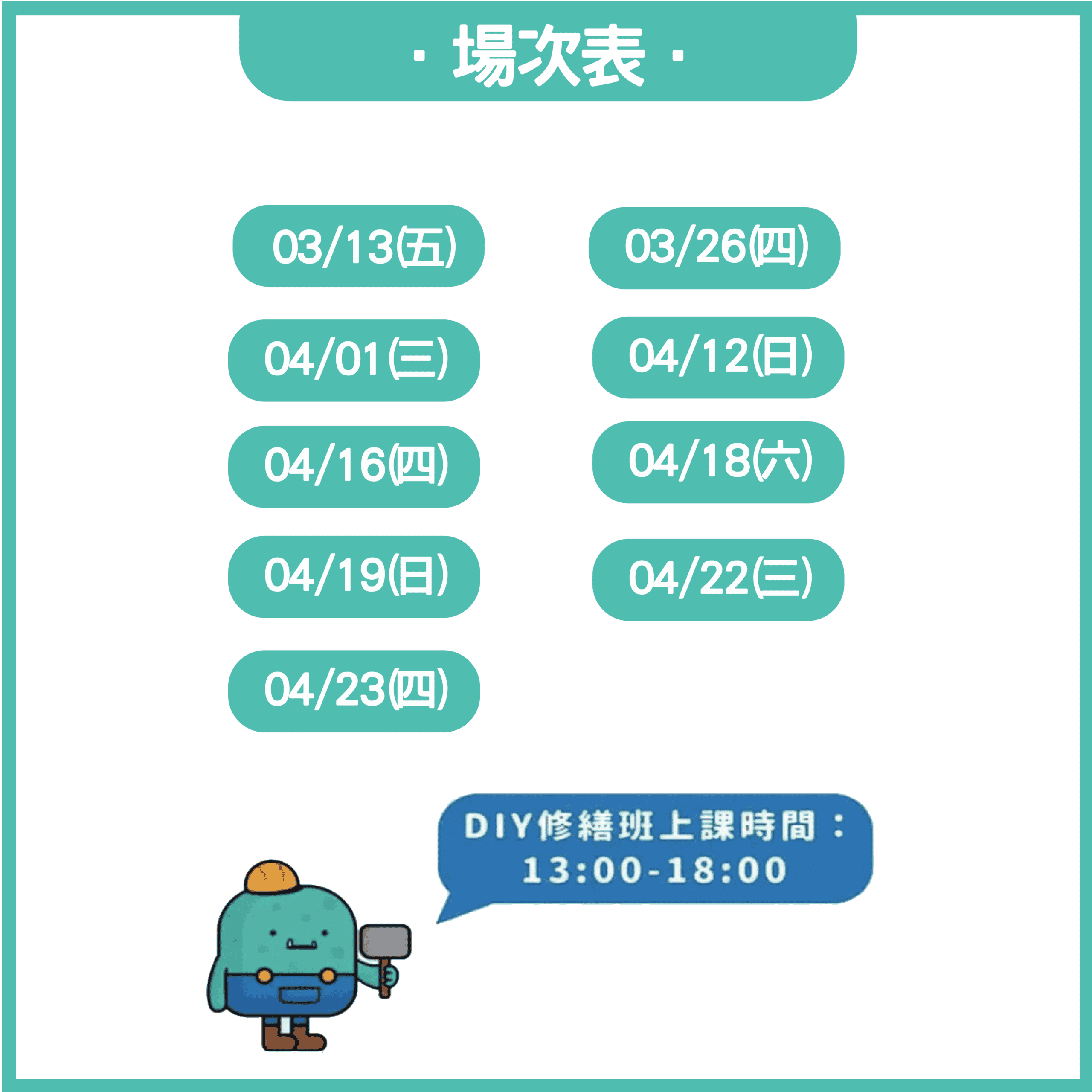 1. 【開辦條件】DIY修繕工作坊幾個人報名才確定開辦呢?