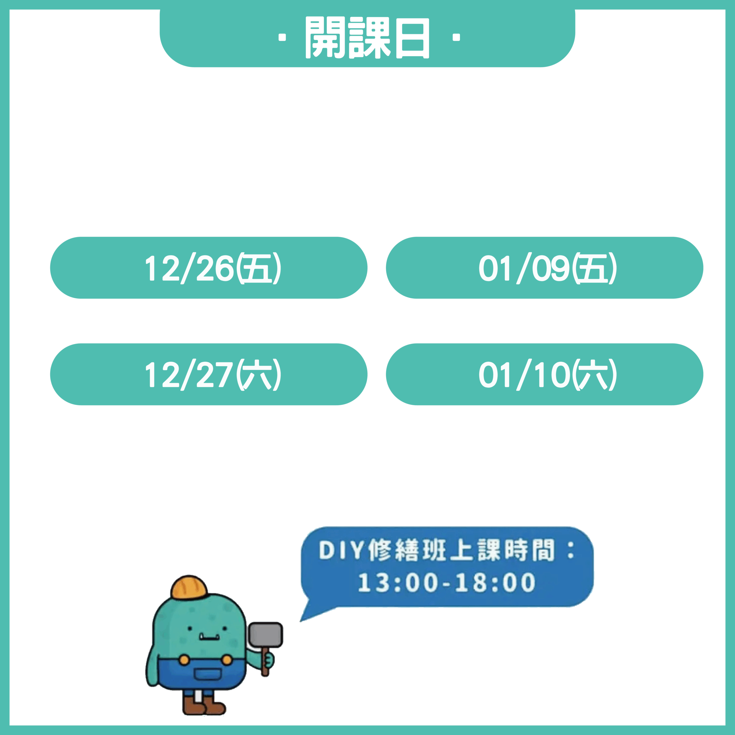 • 1. 【開課條件】DIY修繕班幾個人確定開班上課呢?