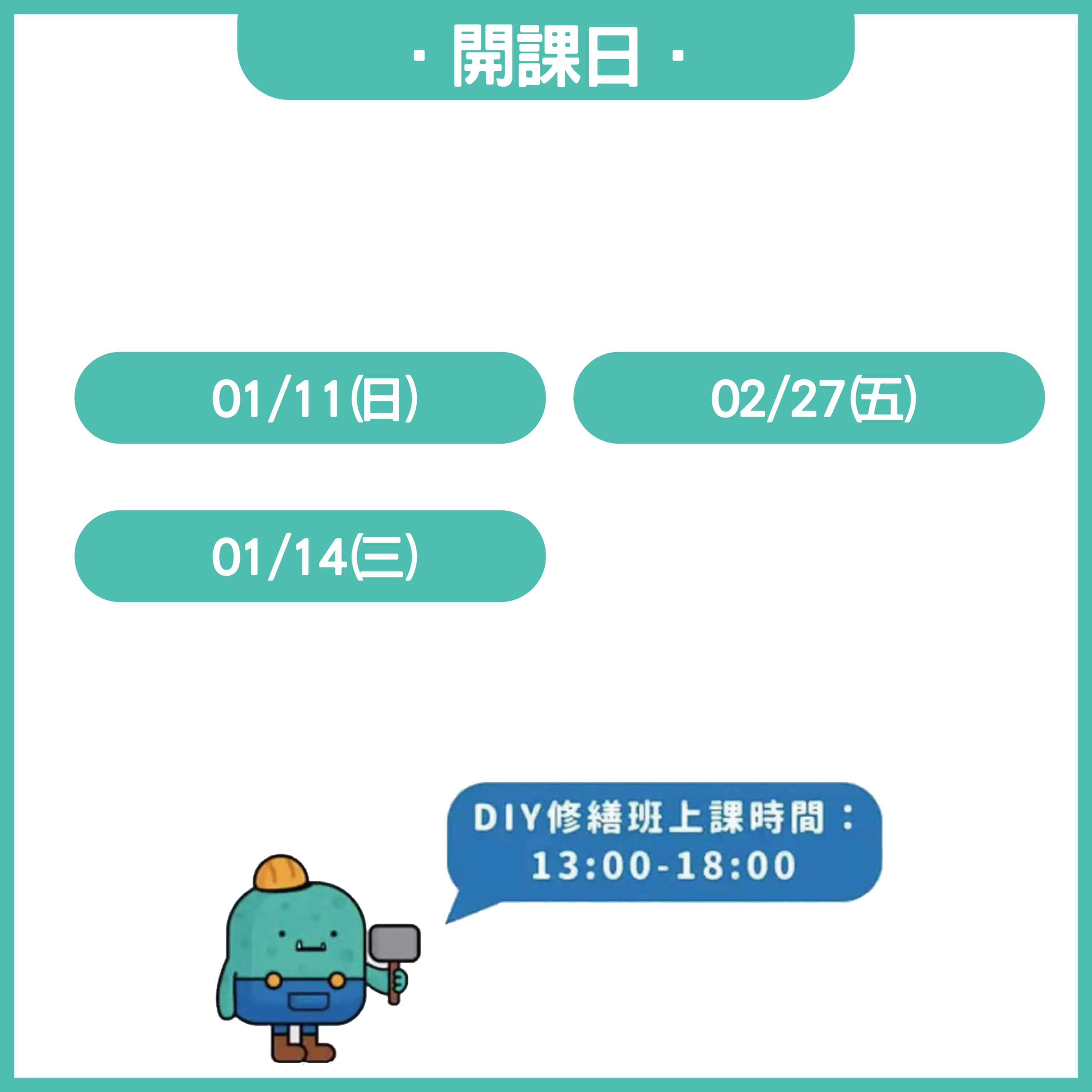 1. 【開課條件】DIY修繕班幾個人確定開班上課呢?