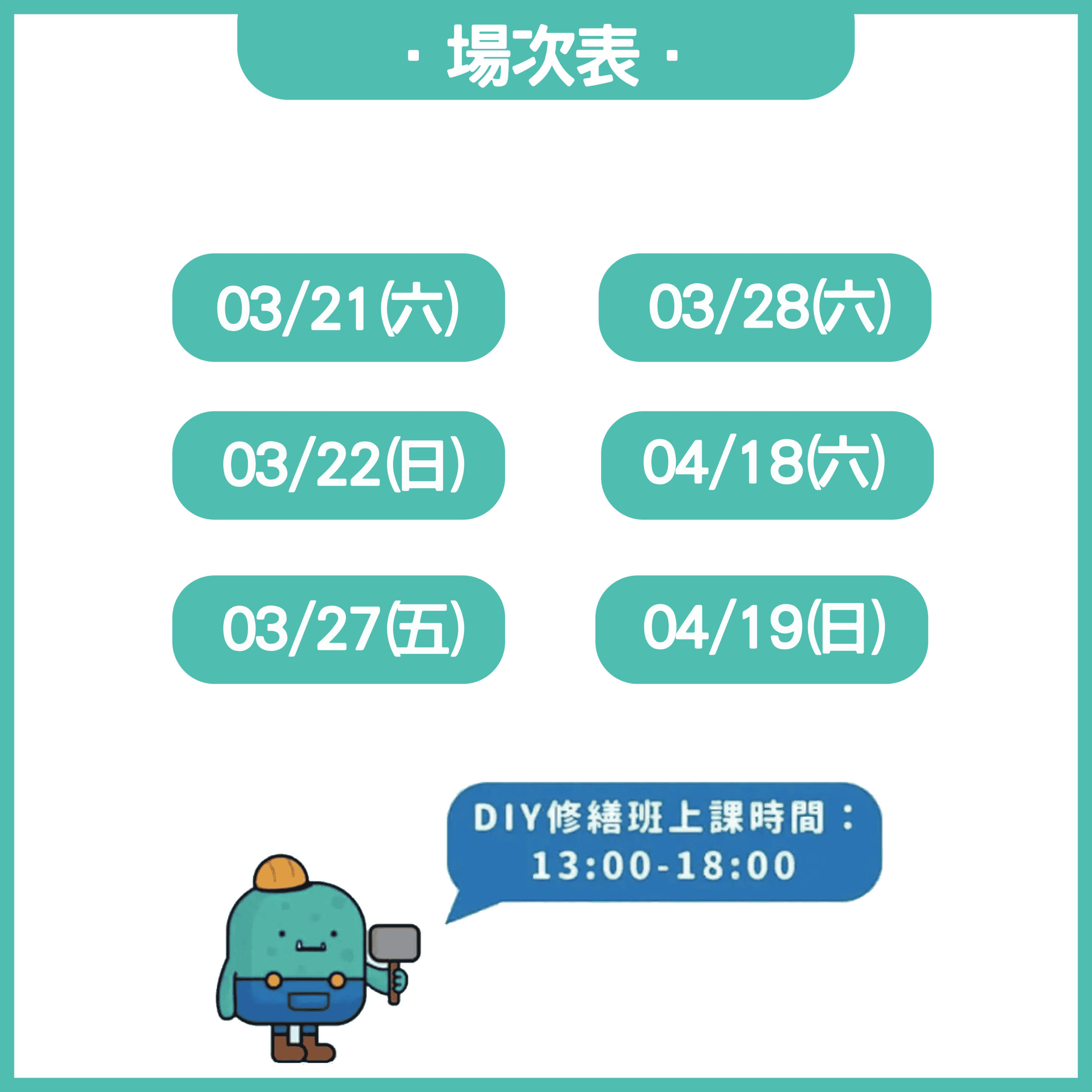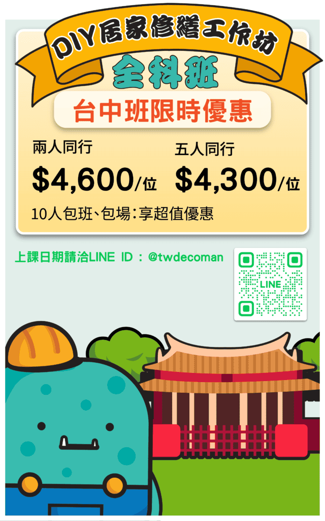 1. 【開課條件】DIY修繕班幾個人確定開班上課呢?