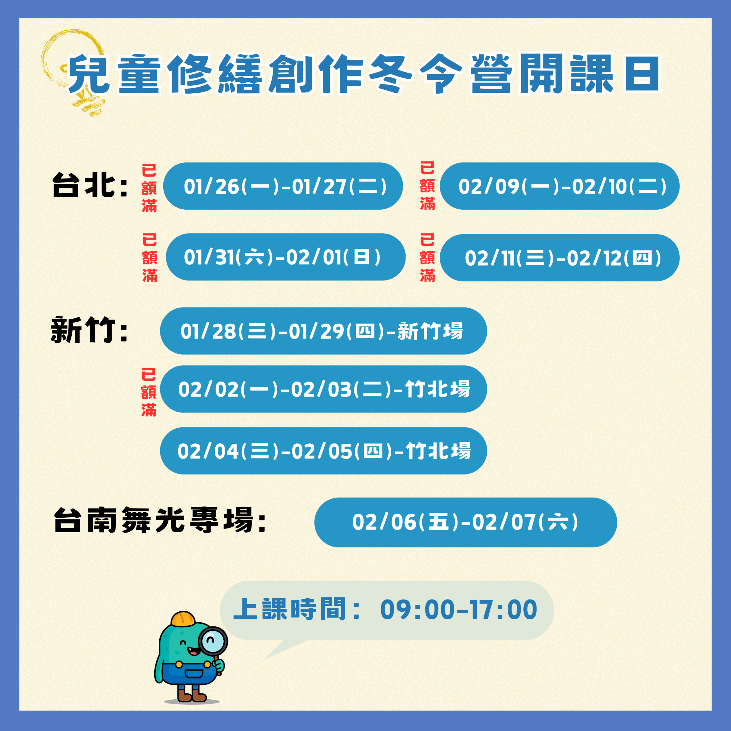 - 課程地點(新竹):新竹市香山區牛埔南路13號 (綠住宅空間)